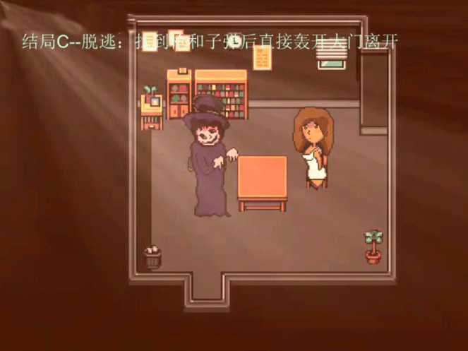 结局D:拿到枪和子弹后,直接打开全是锁的大门后,前往地牢去格蕾塔房间,将其带走