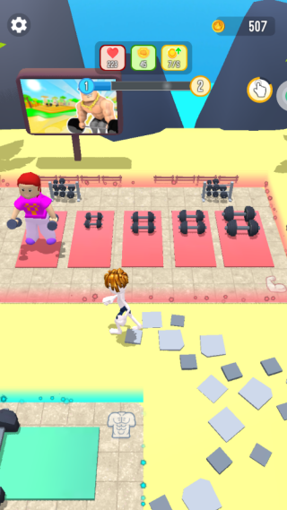 1、点击屏幕滑动控制角色在健身房移动,到不同区域训练你的身体。
