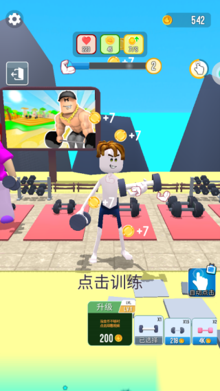 1、角色拥有力量、耐力、速度等多种可提升属性,并与多样化的健身器材升级挂钩,玩家可自由决定成长方向。