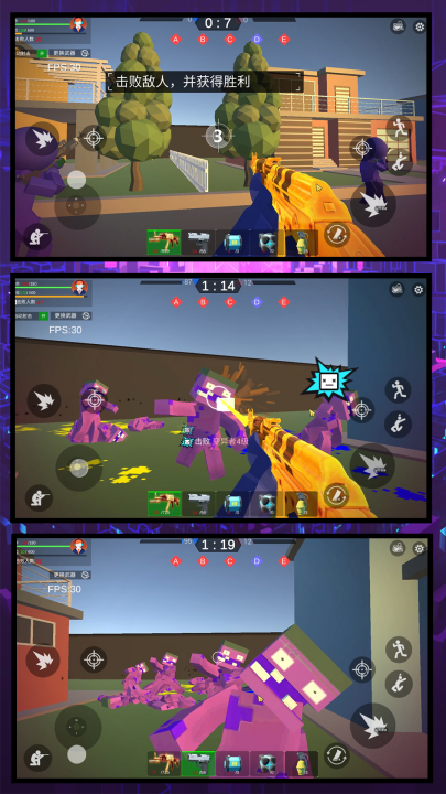 1、系统将为玩家提供大量的道具和武器,可以自由地射击对手。
