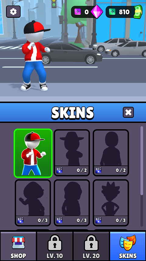 4、点击SKINS可以更换角色;