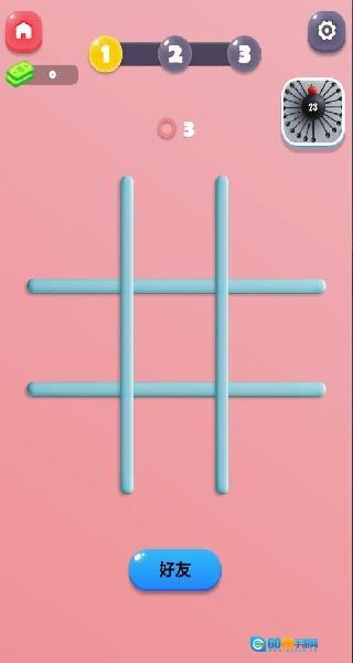 2、选择好友对战,随后进入井字棋游戏,依据三子连线规则展开对战。