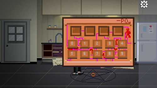 然后回到厨房,将红色不明物质放入魔法阵,输入密码1654。