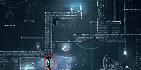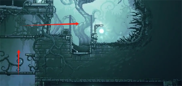 4、往右走,砍断挡路的藤蔓,继续往右,进入城堡后往右下的火盆方向走下去。