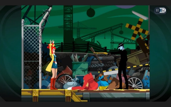 垃圾场中,我来回忙活,一会儿竖起栏杆,一会儿使物体掉落,延缓女子的死亡。之后,我操控各种机关,松开了吊塔上的铁球,砸晕了黑衣男,成功解救了红衣女。