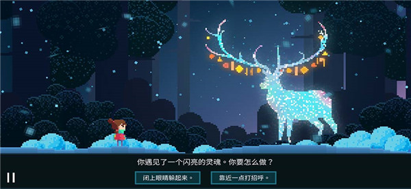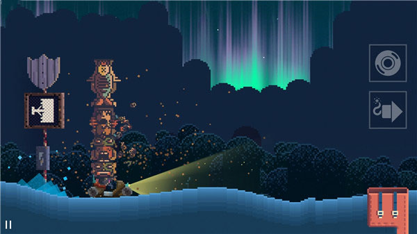 1、治愈系像素美学:2D手绘像素风格并非复古噱头,而是精心构建的视觉诗学——近景为块状结构,远景以渐变平滑图层呈现极光与云海,光影随季节变化,营造出“童话绘本活过来”的梦幻质感,视觉上极具疗愈力。