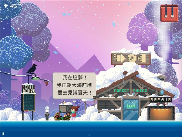 夏日追逐者summercatchersv1.5.3 最新版夏日追逐者summercatchers是一款像素风跑酷冒险游戏,以北国女孩杰米追寻夏日之旅为主线,融合策略道具管理与多元素关卡设计,玩家需驾驶改装木制卡丁车穿越冰雪森林、山谷等场景,利用蘑菇货币购买道具应对动态障碍,每次携带3种道具,需合理分配以应对不同障碍,最终抵达南方海岸。