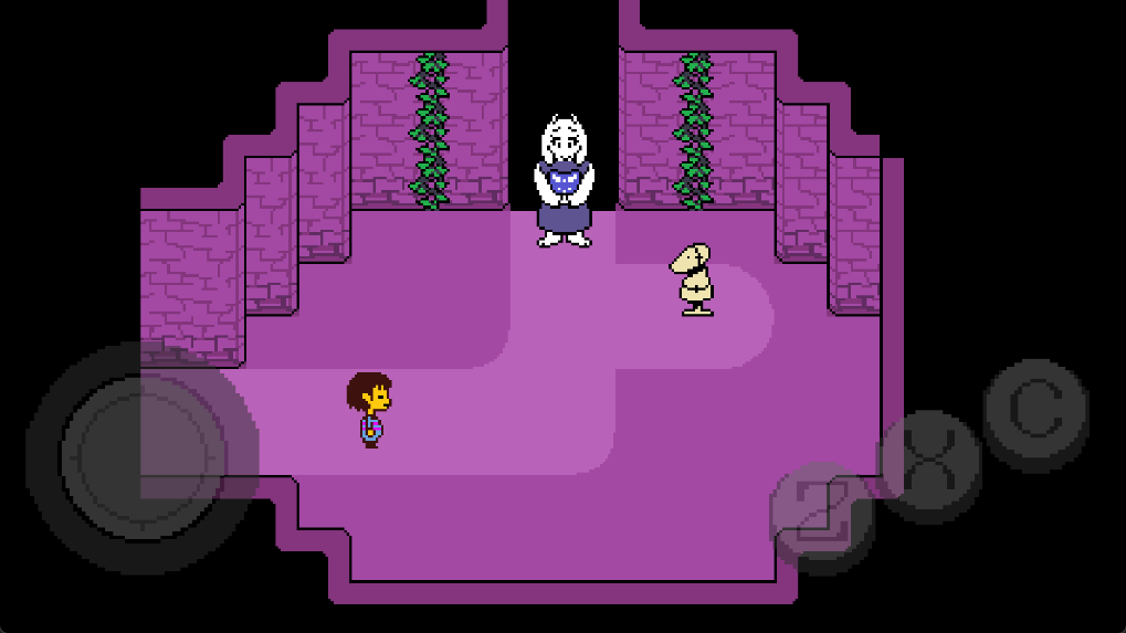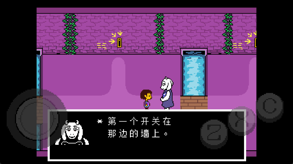 5、进入到第一个存档点北面的房间,Toriel会亲自把这个房间的谜题给解决,所以直接穿过北面的门即可。