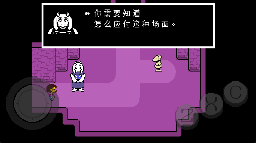 13、其实Toriel就躲在出口的柱子后,她想要测试一下你的信任程度。