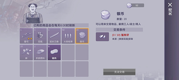 6、加工兔肉后卖出(需要盐,只能探索获得,和餐馆老板对话后开启)