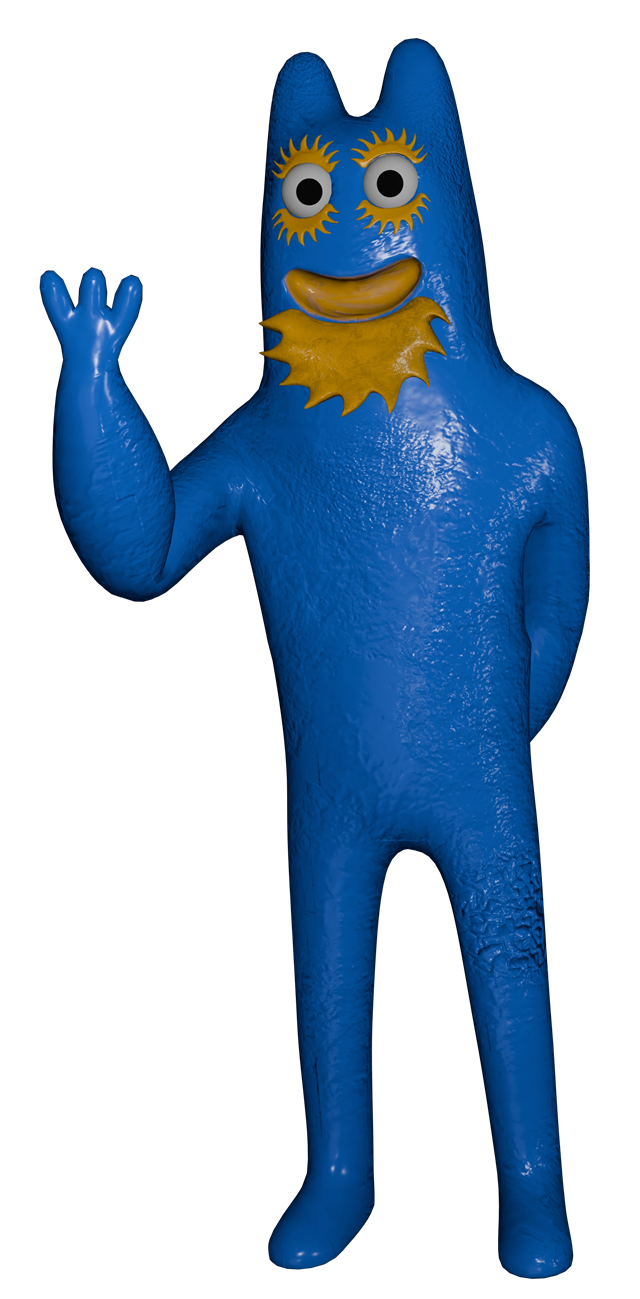 弗兰博与 Banban 非常相似,但与他不同的是,他没有派对帽,而且是蓝色的,更不用说他的舌头没有伸出来了。他的嘴和眼睛附近还有黄色斑纹,类似于胡须和睫毛。他最初是为了在地狱形态被创造后取代班班而创造的。