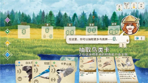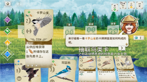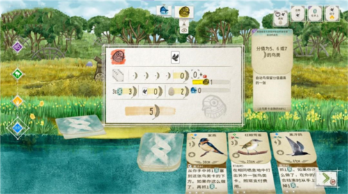 举例来说,「歌带鹀」若处于栖息地的最右侧,它就能自行飞往其它栖息地。游戏过程中,玩家可以灵活调度「歌带鹀」的位置,从而获得更多的资源。