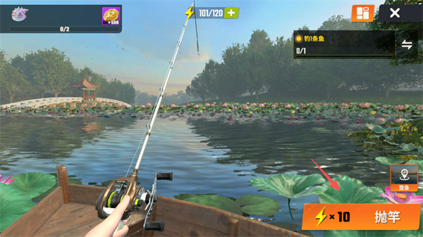 3、进入游戏后,点击右下角的“抛竿",甩出我们决定性的一竿!