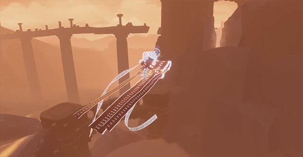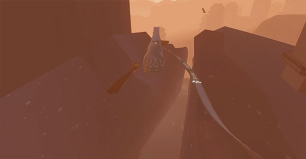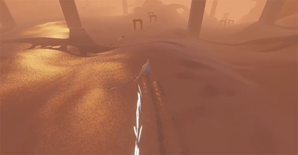 玩家在《风之旅人》中扮演一位徘徊在无尽沙海之中身披斗篷的无名旅者,戴着一条围巾,这是它的飞行秘密,角色可以跑、跳、打坐冥想,可以滑行,还可以短暂飞行,但无法攻击,在黄沙与类似墓碑的东西间前行,可以通过歌唱一般唤出符文咒语与身边的物件做出简单的互动,每一位玩家都有自己的专属符文,每个人都不同。角色歌唱时就会显示自己的符文。角色所有的动作都透着一股子的飘忽与轻灵,飞行尤其如此。