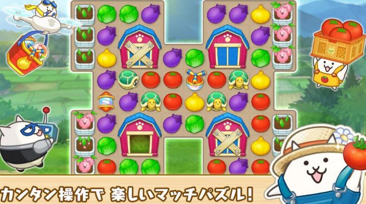 益智大丰收猫咪村游戏(益智大丰收!猫咪村安装器)是猫咪大战争厂商PONOS Corporation研发的三消经营游戏,玩家将一边消除各种蔬菜一边经营你的农场。在益智大丰收猫咪村中有许多土地可以让你种植不同的蔬菜,也有非常多的消除关卡可以让你去选择游玩,丰富的村民角色可以让你去互动,不断消除来打造属于你的农场。