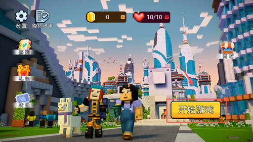 1、进入游戏后选择新建世界或加载存档,点击开始即可进入广阔的像素地图自由行动。