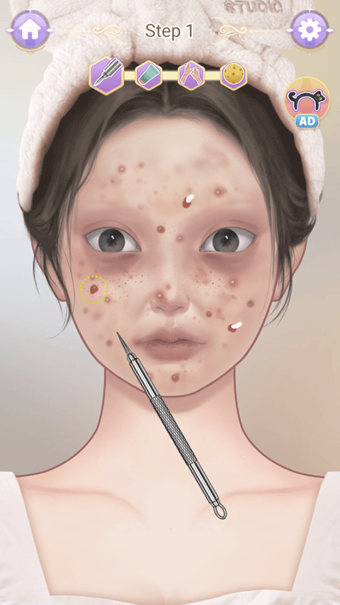 4、开始清洁面部,移动道具到虚线位置;