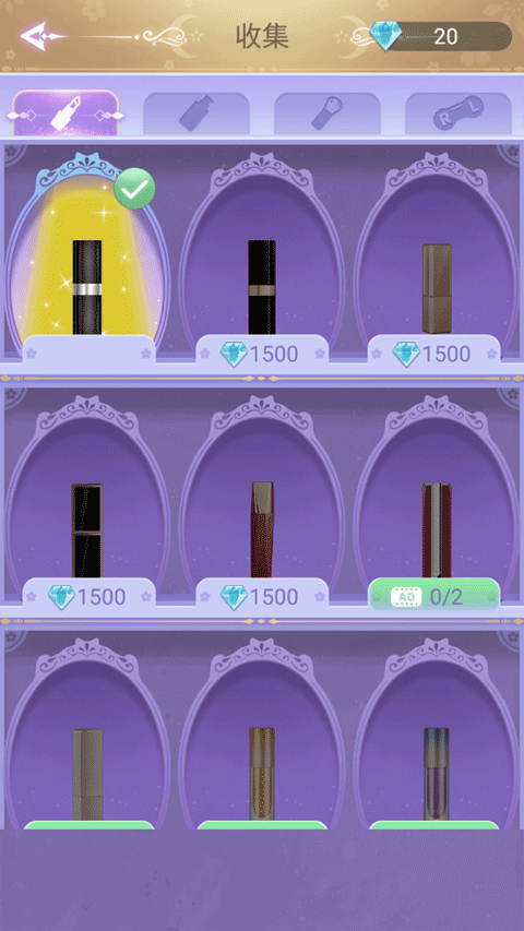 7、钻石可以在游戏结束后,在首页点击“收集”,兑换更多化妆道具;