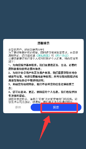 1、点击温馨提示里的同意并继续。