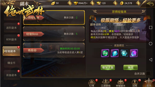宗师试炼分为三个阶段,完成相应的阶段条件,可解锁对应新玩法内容。在玩家角色400级时,将开启宗师试炼第一阶段。完成该阶段试炼后可解锁宗师经验副本。该副本需要玩家在有限时间内击杀副本中的怪物,每日可免费挑战2次,也可通过鼓舞增强自身实力。实力越强,经验越多,升级自然也越快!