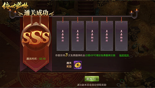 在进入金币副本前,系统会根据玩家的综合情况给出一个预计收益。只要玩家能顺利击杀副本内的金币BOSS就能获得与预期收益相近的金币奖励。除此之外,在战斗胜利后,玩家还可以有翻牌得奖的机会。至于能获得怎样的奖励,就要看各位大侠的人品了。