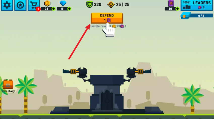 5、要测试你的塔,请点击“防御”按钮。游戏中将选择两名对手,他们的机甲部队将在合作模式中攻击你的塔。