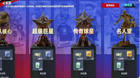 在天梯赛季中,玩家的目标是在赛季结束前攀登7个不同的段位阶梯。这些段位依次是:初入 联盟、明日之星、后起之秀、球队核心、超级巨星、传奇球星、以及最终的名人堂。