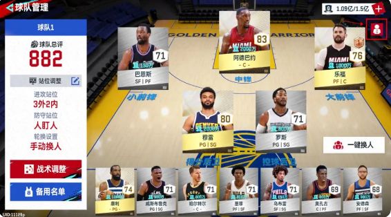 一支队伍一共12名球员,每名球员都有资金的薪资,点击如果你组建的球队,工资帽不符合要求,可以在天梯赛界面点击“球场”按钮,快速进入球队管理界面。