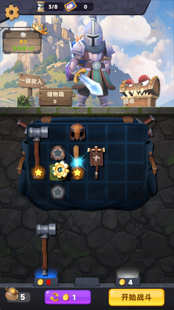 背包大战战斗大师游戏是一款休闲益智类合成游戏,游戏采用卡通风格打造。游戏内玩家将自由选择感兴趣的职业,在这里你可以搭配不同的装备,体验丰富的游戏玩法。对背包大战战斗大师游戏感兴趣的玩家不要错过,欢迎大家在本站下载游玩。
