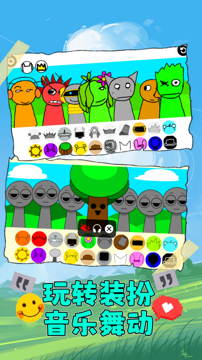 混合节拍、声音和角色,在充满活力的动画世界中构建独特的曲目。拖放控件使您可以轻松尝试无尽的组合,每次演奏时都为您提供新鲜的音乐可能性。想要获得令人兴奋的惊喜,请将黑色按钮拖到角色上,以幽灵般的恐怖主题改变游戏!