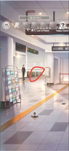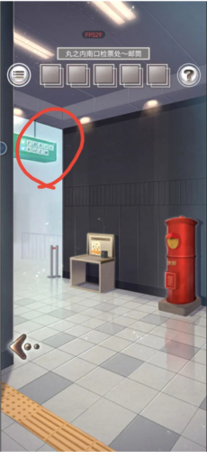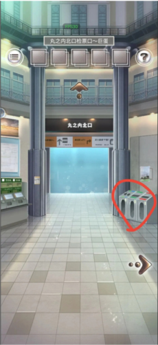 首先要找的材料是纸笔和绳子,提示下面购物街开启了,那就先去看一下,点击原本楼梯位置来到购物街,查看柜台右下角的棕色纸箱拿到一支笔,返回车站大厅,查看一下售票员右边的闸口,箭头方向像是线索记下来←←→←。