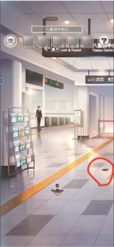 目的地购物街后面,所以来到车站大厅后下楼梯,查看收银台右边的箱子闪光点,拿到一个有空格的金属牌,后退到售票厅,从左边售票机再次拿到一包纸巾,不愧是小日子过得不错的地方纸巾都成包扔,售票机右边的柱子上有个字母海报,使用金属牌后获得四个字母,由上到下获得密码时间TIME,现在还需要四位字母密码的地方就是......好像没有。