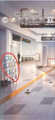 开始就获得了提示新传单,那么就开始查看传单吧,首先是车站外右侧邮箱场景,最左边的柱子上多了一张俱乐部海报,梅花是黄色的,然后是车站大厅里最开始就一直在的通知立牌,方块是蓝色的,最后是右转储物柜的墙上海报,上面红心是红色的,三个颜色齐了。