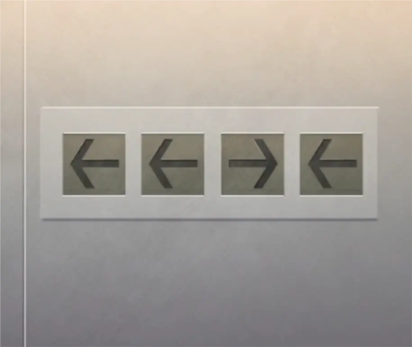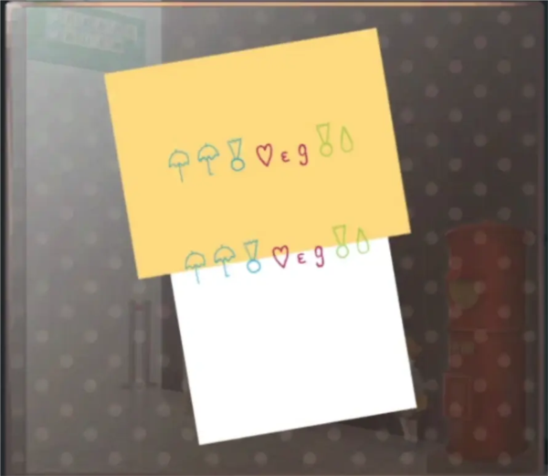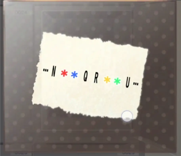 来到上一章结束的地方,就是车站楼梯下面开门进入的地方,椅子上闪光点获得一张纸条的另一半,组合两张纸片,获得了四个颜色的位置,看起来不像是什么单词啊,倒像是字母歌,唱一唱HIJKLMN,OPQ,RST,UVWXYZ,好了获得了密码红色=O,蓝色=P,黄色=S,绿色=T。