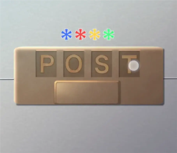 回到大厅左转到失物招领处,查看窗口后面的书本,密码是蓝红黄绿,也就是POST,是邮件没错了,调整一下书本的密码到POST打开拿到信。
