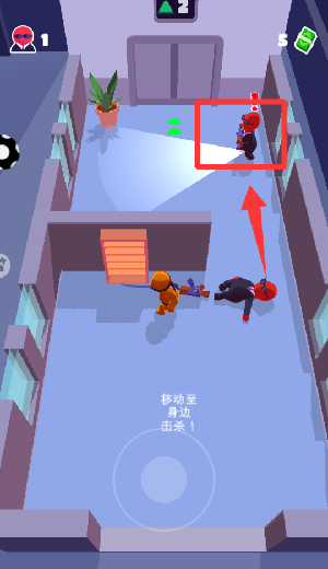 4、避开红圈:迅速绕背一枪解决打手。