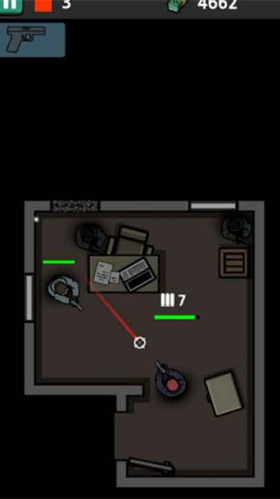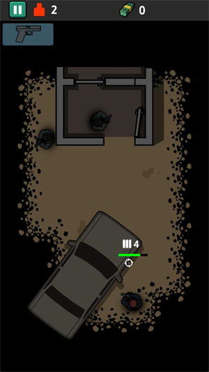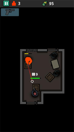3、进入关卡后按住屏幕可以让角色探身出来射击,滑动屏幕可以选择不同的攻击方向。