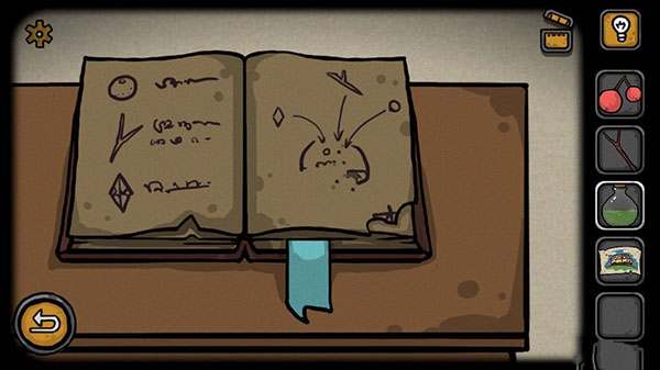 然后我们就可以出门啦!出门后向左走,我们会看到一个山洞(小心不要点错进入森林,小编一直点错....),加入山洞后,女主会说太黑了,需要一个火把,这个时候我们就拿出月之卷轴(会出现月之卷轴的隐藏内容)(同上,有兴趣的可以画下来),看到提示之后我们就可以回家了。