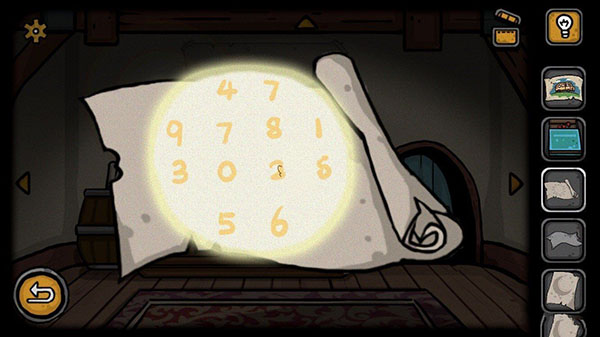 5、然后我们是需要利用这个太阳魔法卷轴,然后点击在安娜的房间中,在点击她桌上的小灯,然后在拿出了太阳魔法卷轴出现一张数字图,这样我们就是会发现里面的内容啦(有密码的)。