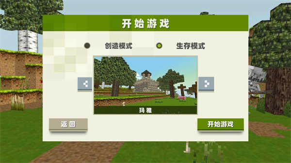 1、打开游戏界面先去点击开始选择创造模式或者生存模式进入到地图里面,然后熬不住玩法说明的操作步骤来移动角色探索方块世界。