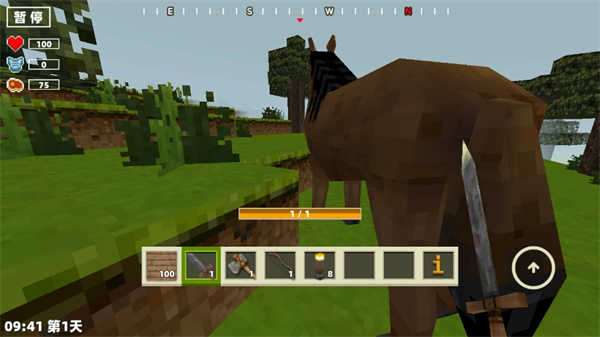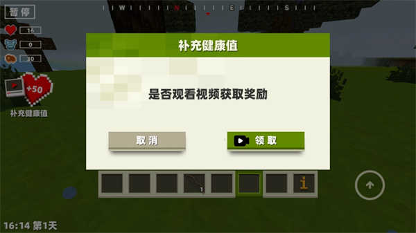 2、通过滑动屏幕来旋转视角寻找可以收集的资源使用武器进行伐木,移动角色探索方块世界完成目标任务冒险生存到最后。