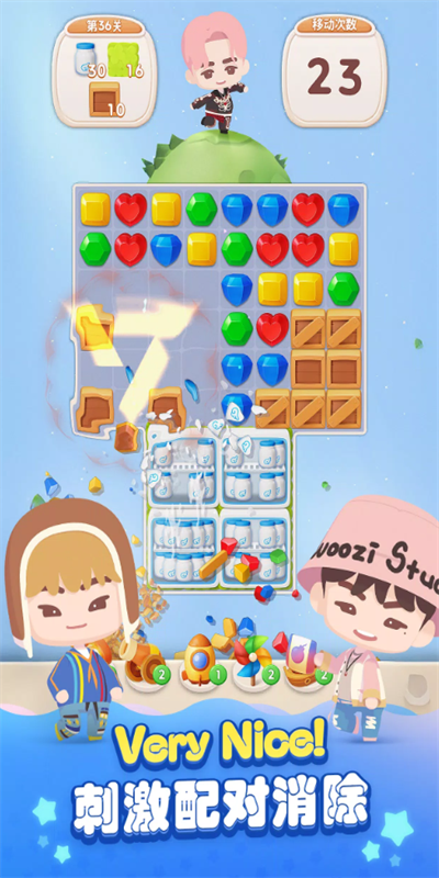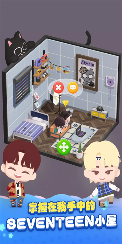 玩家可以在自己偶像SVT成员3D形象的陪伴下游玩消除关卡
