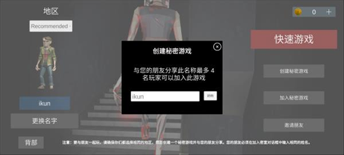 3、如果朋友没有创建房间的话,我们之间点击创建秘密游戏。