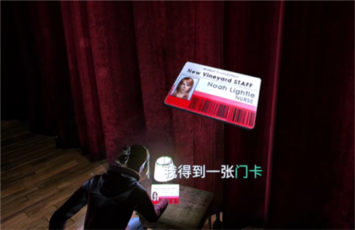 4、在旁边的桌子上,获得门卡,打开门出去