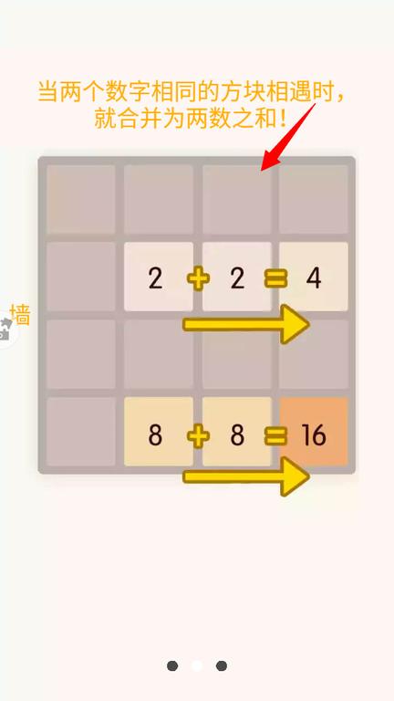 2、相同数字的方块相撞时会合并成为原数字两倍的新方块。