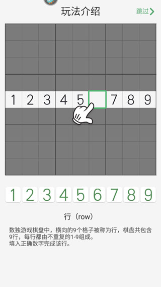 利用逻辑推理,在其他所有剩余的空格上填入1~9的数字,其在每一行、每一列和每一宫中都只出现且只出现一次,
