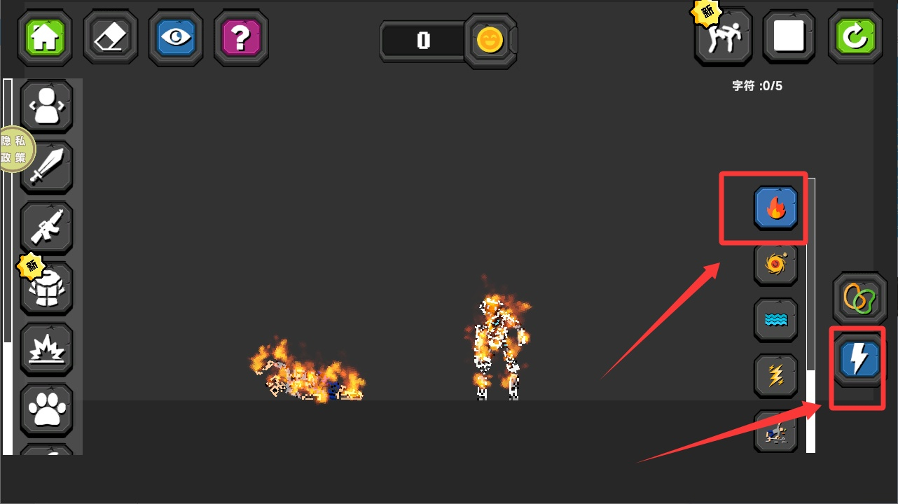 4、在右侧闪电图标下方找到火把选项并选中,接着把它拖动到角色所在位置,这样就能完成装备配置了。