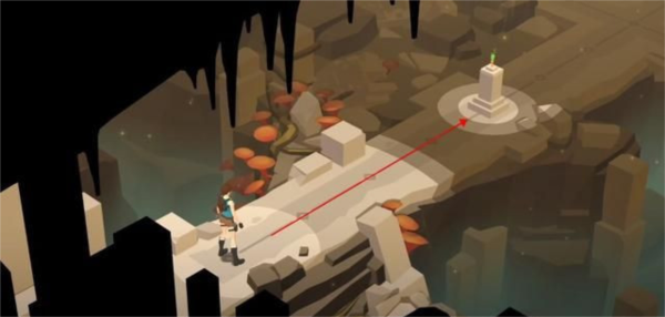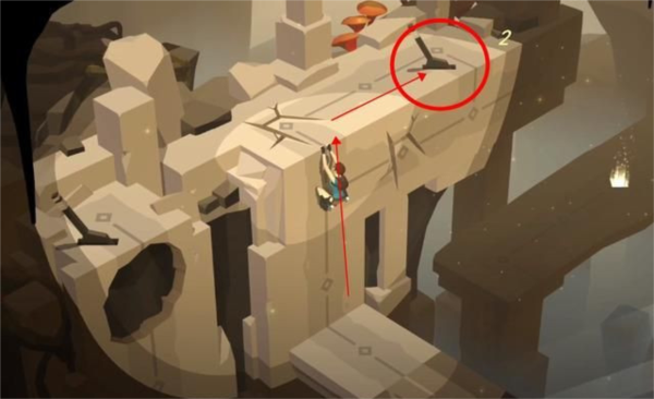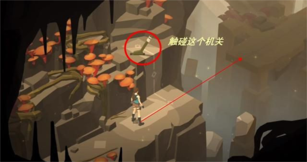 接着就会遇到一个断崖,我们爬上去触碰机关就能通过。