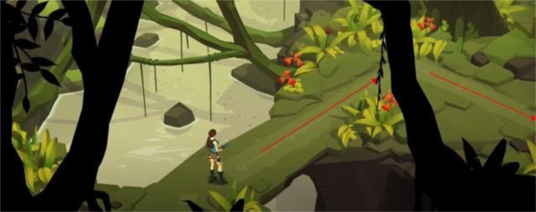 首先玩家根据指示操作沿着图片上的红线向下走。