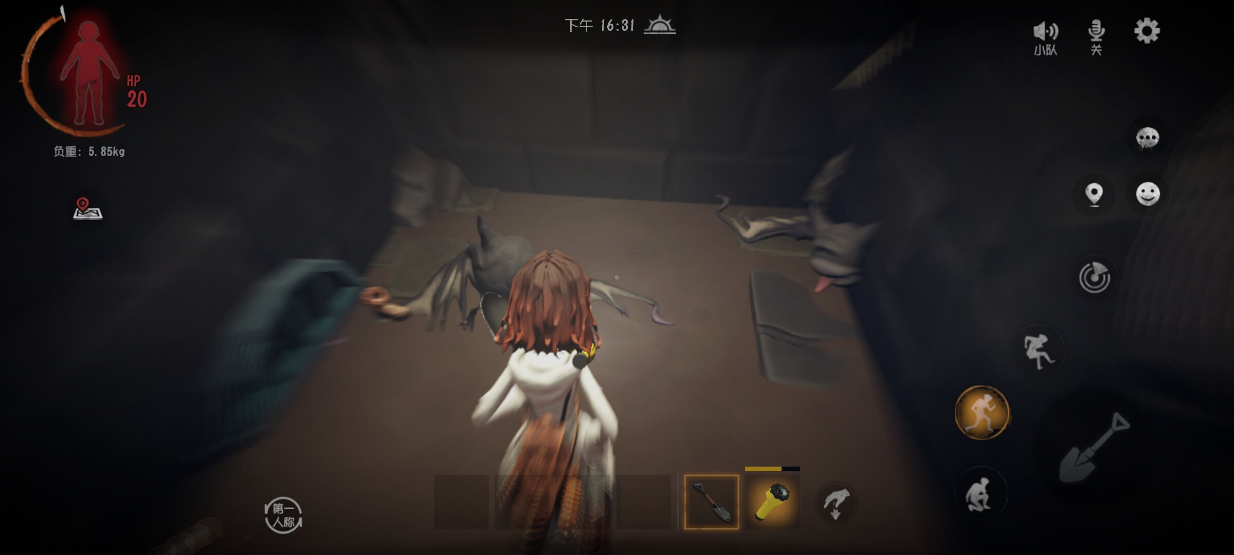 5.蜘蛛:会在道路口铺下蜘蛛网,路过的玩家通过减速并且蜘蛛会感知到过来抓你,注意速度很快不要妄想走进蜘蛛网逃离蜘蛛的追捕,它伤害高且一击毙命,可由铁铲猎枪等消灭。